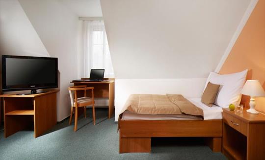 Toaleta, sprchový kout, fén, hotelové ručníky a osušky, LCD TV se satelitními programy, mini lednice, trezor, telefon a WiFi.