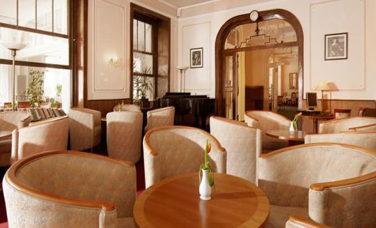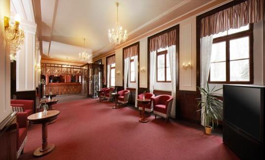 Menší obytná plocha pokoje s výhledem do Husovy ulice, která vede přímo do historického centra Františkových Lázní.